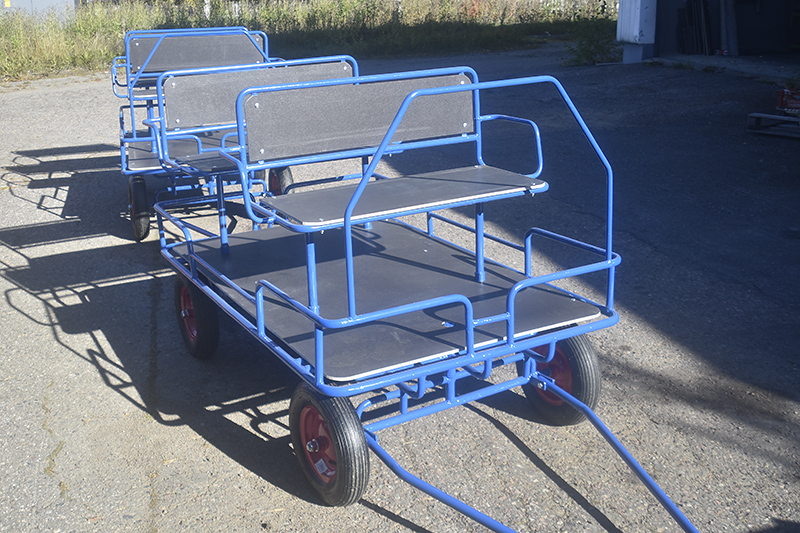 Kerro meille toiveistasi, yritämme toteuttaa haluamasi kärryn. Vaunuja voi laittaa peräkkäin niin monta kuin haluaa, vain vetovehkeestä riippuu kuinka vaunut tulevat perässä.
